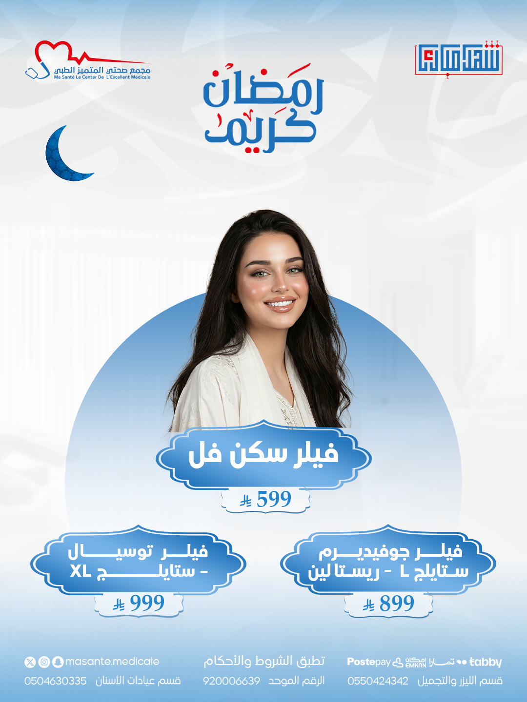 | عروض التجميل | فيلر سكن فل, فيلر جوفيديرم ستايلج -ريستالين, فيلر توسيال -ستايلج |